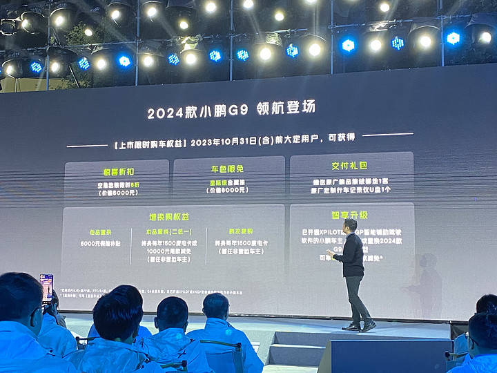 9月19日,2024款小鹏G9正式上市,共推出5款车型,分别为570 Pro、702 Pro、570Max、702 Max、650 Max。价格区间为26.39-35.99万元,上市即交付,同时还推出了上市限时购车权益以及对现有老用户的“感恩礼”。