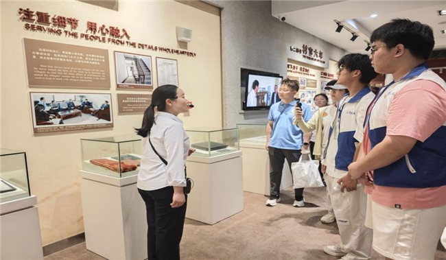 图为实践队在沈浩同志纪念馆内听讲解员讲解沈浩精神 顾鼎张供图