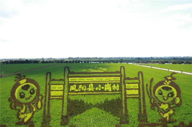 图为小岗村试验田内用不同颜色水稻所做稻田画 高子豪供图