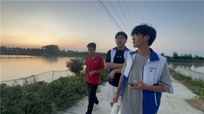 图为实践队在池塘边对小岗村生态振兴的标杆企业的垚鑫小岗村生态甲鱼养殖公司负责人进行采访 方国庆供图